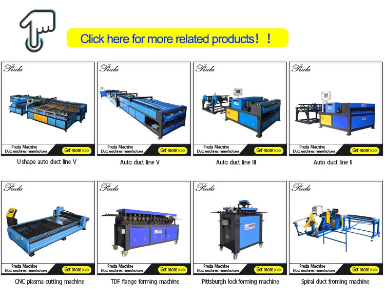 Functions display1. Leveling & grooving; 2. Square & sharp notch cutting; 3. Middle hole punching; 4. Angle flange former ("L" shape both side former); 5. Folding. Products Display ![]() ![]() ![]() ![]() ![]() ![]() ![]() Company Profile ![]() Anhui Preda Machinery Manufacturing Co., LTD. is a manufacturing company. Our company is committed to the production of HVAC duct production machines. Our company has more than 10 years of production and export experience. Anhui Preda Machinery Manufacturing Co.,LTD is located in Hongyang Industrial Park, Bowang Town, Bowang District, Ma'anshan City, Anhui Province, China. It is only 20 kilometers away from Nanjing International Airport, which also facilitates customers from all over the world to come to our factory to have a convenient face-to-face conversation and visit.We manufactured and exported auto duct lines, CNC plasma cutting machine, TDF flange forming machine, pittsburgh lock forming machine, spiral duct forming machine, elbow making machines, TDC flange forming machine, oval duct forming machine and so on. All our machines are popular in the ventilation pipe manufacturing industry. We also exported CNC hydraulic press brake machine, CNC hydraulic shearing machine with factory price and best quality. All of our duct machines are in stock, we will manufactured the most of standard commonly used machine as inventory, so if our customers need, we will arrange delivery all the time.We also have our after-sale servie teams, we support our engineers overseas service. When you met the problems, we will help you solve the problem in time, and all the machines we will have a lifetime warranty. We use our sincerity to serve our customers and expect more customers to choose Anhui Preda Machinery Manufacturing Co., LTD. Certifications ![]() Our Advantages ![]() ![]() ![]() FAQ 1. How to get a accurate quotation from Preda Machine?Provide the machine name you want, the specifications you need and the quantity of machine, we shall quote accordingly! 2. What's the shipping cost from China to your country?Please kindly tell us your nearest port to your place. We have reliable shipping forwarder to insure cheap, safe, convenient and timely delivery via sea. 3. Payment terms, MOQ, warranty, FOB.Payment terms: 20% TT paid in advance, the balance of 80% before the shipment.Minimum order quantity: 1 set of any machine of Preda Machine.Delivery time : 5days after order confirmation. As a real manufacturer, we normally stock our machine in at least 5-10 sets including auto duct line 5, auto duct line 3, auto duct line 2! And at least 20 sets each for TDF flange forming machine, Pittsburgh lock former, TDF folding machine, Pneumatic folder and etc...Shipping terms : FOB, CFR, CIF and etc.. according to your requirements.Warranty:24 months after our machines arriving at you. 4. What's the package?Fumigation-free plywood case for LCL and nude package for full container basis such duct production line 5, duct auto line 3, duct line 2... 5. What about commissioning service?We can offer commissioning service, the buyer need to pay for all the transport, salary, hotel, meals for Preda Machine technicians caused during the service period. 6. What's policy for guarantee and broken parts?Warranty period of equipment is two years, during which the broken parts and spares caused by quality can be offered free. After guarantee period, all broken parts or easy wearing parts will be charged in a most competitive price ever in the market! |